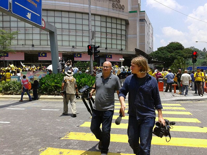 1.05 petang: Pengamal media antarabangsa turut sibuk membuat liputan.