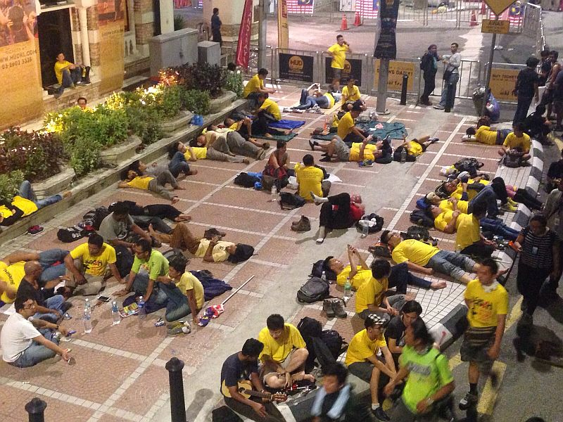 10.18 malam: Peserta Bersih kini bersantai setelah penat berjalan