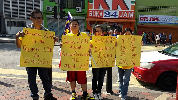 10.40 pagi: Plakad mengenai isu derma RM2.6 bilion antara yang dibawa peserta Bersih 4.