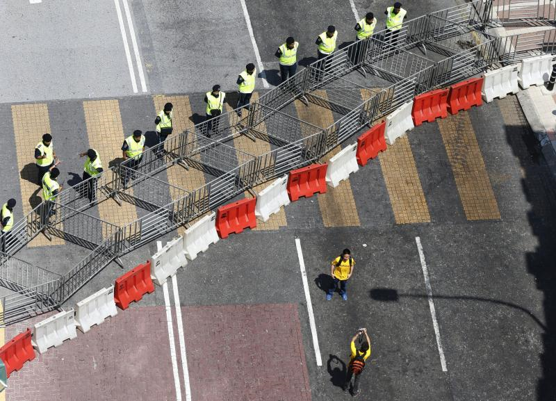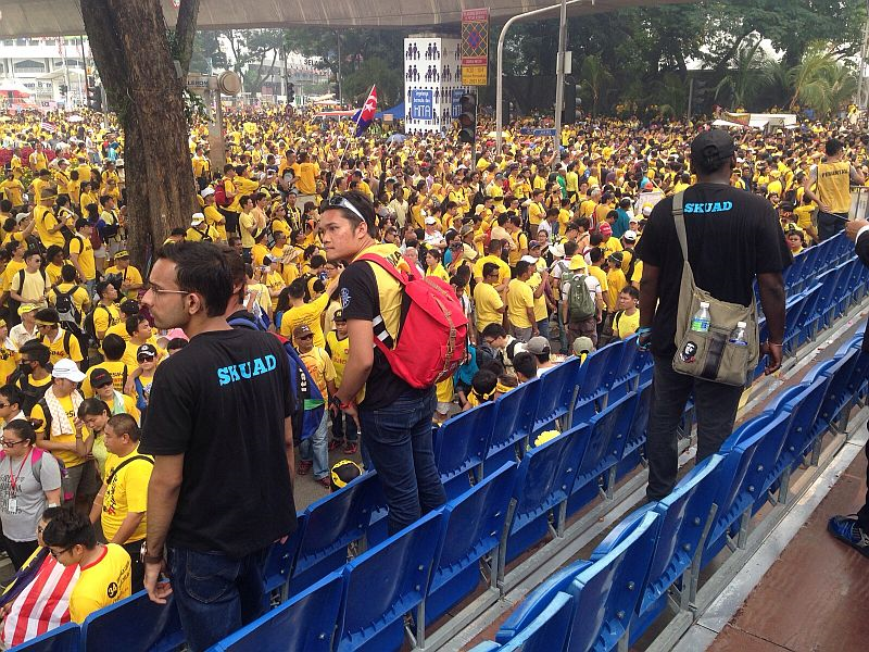 1.40 petang: Berbanding semalam, peserta Bersih 4.0 pada Ahad tidak lagi dibenarkan duduk di kerusi bertingkat yang disediakan sempena sambutan Hari Kebangsaan. Kawasan tersebut dikawal oleh petugas AMK.
