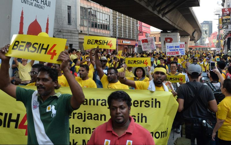3.28: Peserta Bersih 4 berkumpul di laluan ke Dataran Merdeka dengan melakukan pelbagai aktiviti protes terhadap kerajaan.