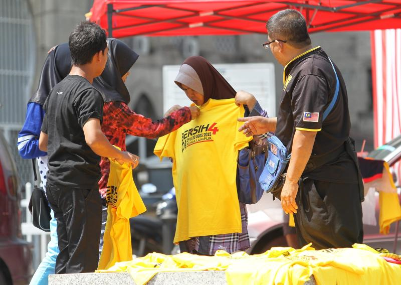 12.57: Kemeja-T Bersih 4 laris dijual di tepi jalan sekitar kawasan perhimpunan.