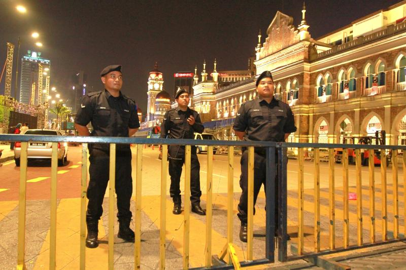 10.36 malam: Polis berkawal di Dataran Merdeka bagi menjamin keselamatan pengunjung.