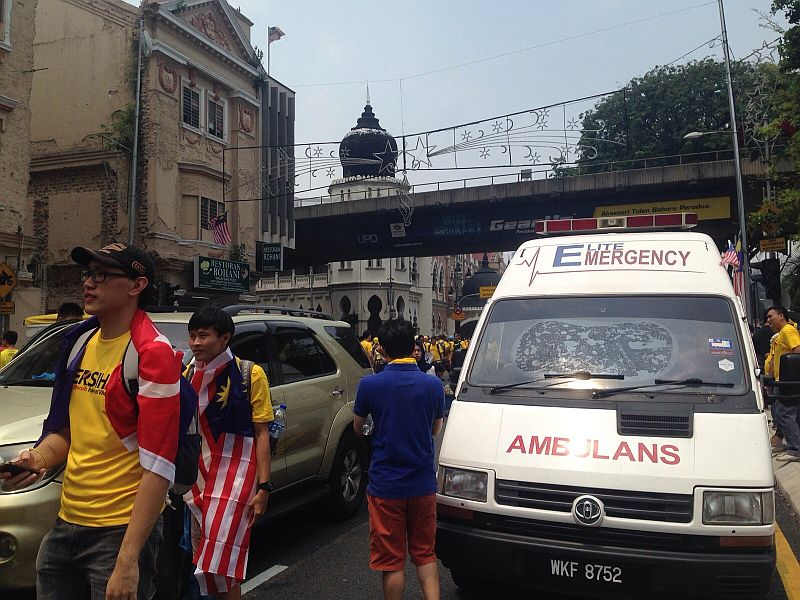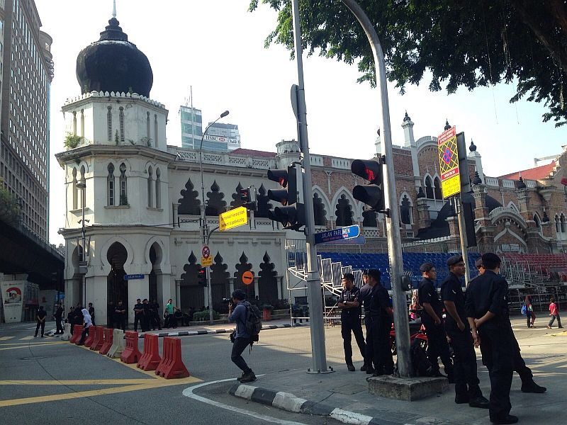 Bermula kira-kira pukul 6 hingga 7 petang Jumaat, beberapa buah trak polis dan ambulan dapat dilihat melalui di hadapan Masjid Negara, dipercayai menuju ke Dataran Merdeka.