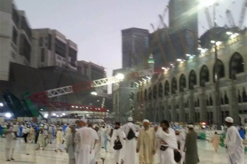 Kejadian yang berlaku selepas solat Asar pada pukul 5 petang (waktu Arab Saudi) susulan ribut pasir dan hujan lebat itu, sebuah kren tumbang dan menghempap kawasan saie di tingkat empat.
