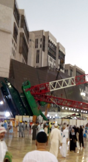 Kejadian kren tumbang itu dilaporkan berlaku semasa hujan dan ribut pasir di kawasan Masjidil Haram yang sedang giat menjalankan kerja-kerja pembesaran.-- Bernama