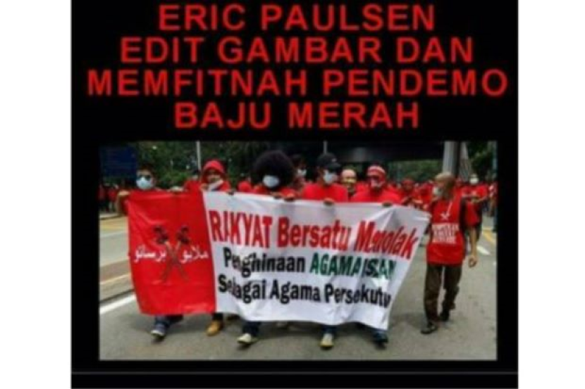 Imej-imej telah disertakan dengan kapsyen yang mengatakan, "Eric Paulsen menyunting gambar untuk memfitnah penunjuk perasaan daripada perhimpunan baju merah".