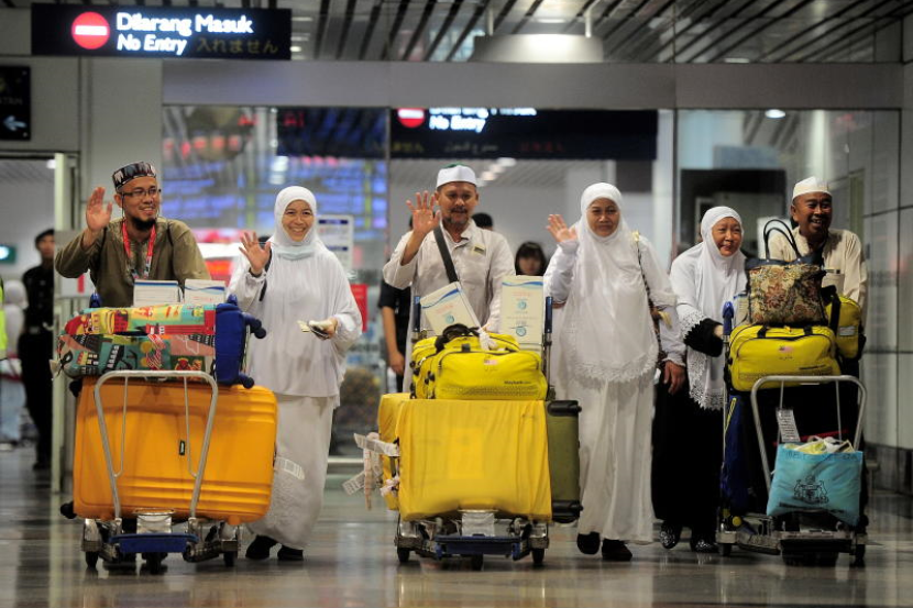 SEPANG: Kumpulan pertama 407 jemaah haji Malaysia selamat tiba di Lapangan Terbang Antarabangsa Kuala Lumpur (KLIA) di sini pada Selasa malam dengan menaiki pesawat SV5701 Saudi Airlines.