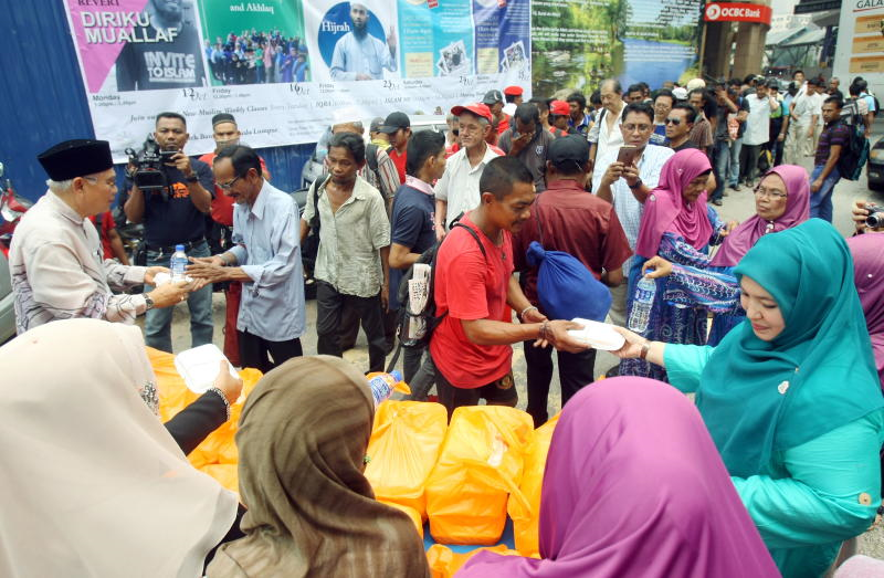 Pada majlis sama, YBK turut mengagihkan makanan kepada 200 gelendangan di sekitar ibu negara.