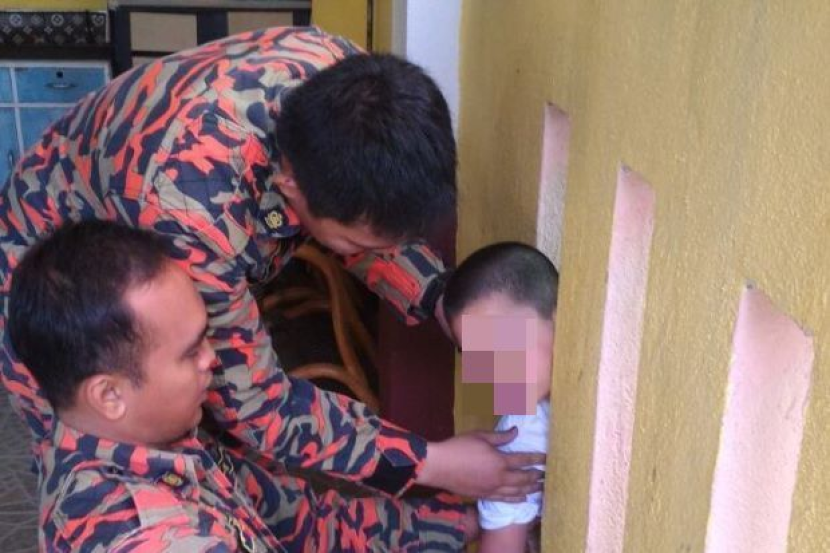 "Kami terpaksa memecahkan sebahagian dinding bagi mengeluarkan kepala mangsa yang tersepit itu.