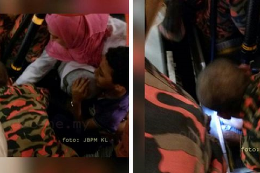 Menurut Che Shaari, anggota bomba berjaya mengeluarkan kaki budak lelaki berkenaan kurang dari 10 minit.