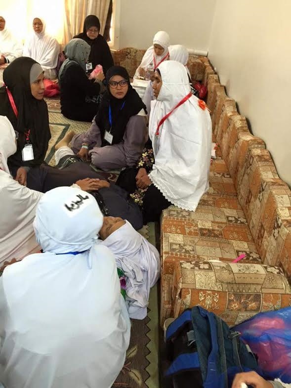 “Jangan halang alat penghawa dingin daripada terkena padanya. Tolong kipas…,” pinta seorang jemaah wanita.