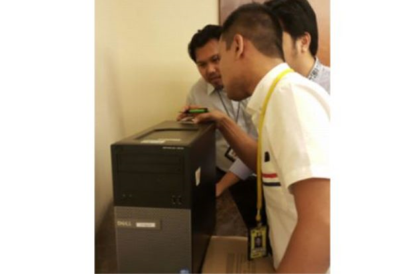 Sekumpulan anggota polis dan pegawai Suruhanjaya Komunikasi dan Multimedia (SKMM) mengambil sebuah komputer untuk membantu siasatan mereka.