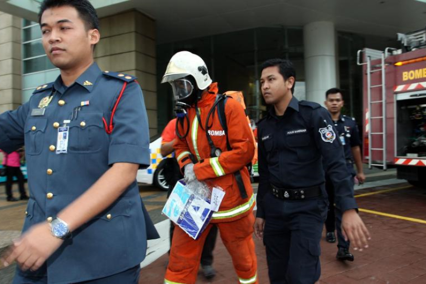 Jabatan Bomba dan Penyelamat tiba di perkarangan bangunan Blok E7, Kementerian Kesihatan di sini pada pukul 3.30 petang Jumaat selepas menerima panggilan kecemasan.