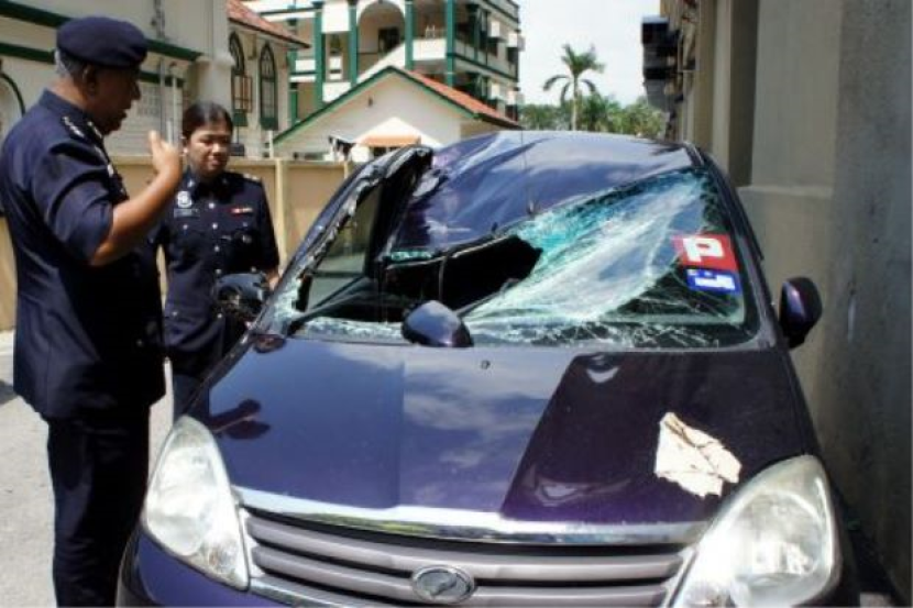Ketua Polis Daerah Melaka Tengah, ACP Shaikh Abdul Adzis Shaikh Abdullah berkata dalam kejadian kira-kira 11 pagi itu, mangsa Arfan Syazani Salahudin, 19, yang menaiki Perodua Viva baru tiba di tempat letak kereta hotel berkenaan sebelum dihempap satu objek dari atas.