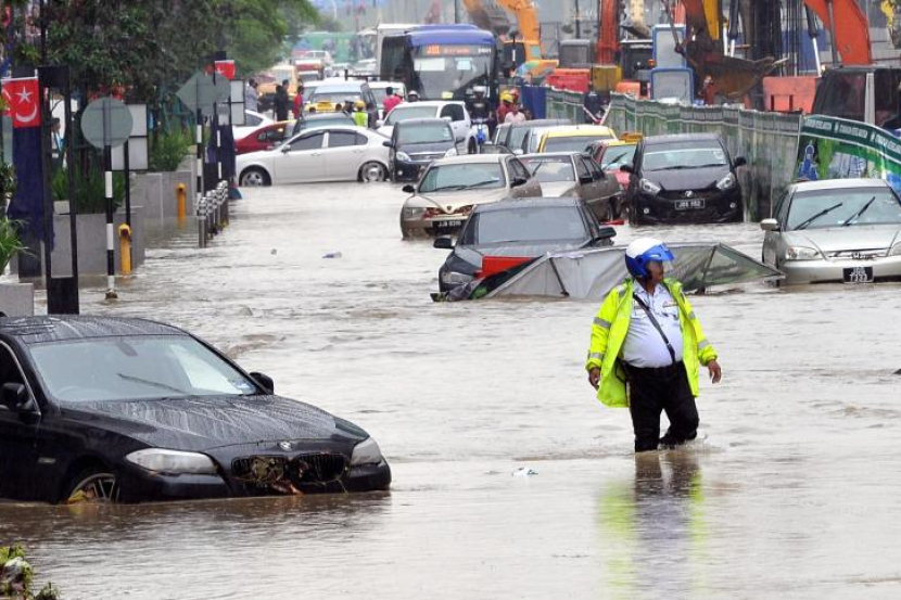 Kebanyakan kereta ditengelami air berikutan hujan lebat yang bermula dari pukul 11 pagi pada Isnin.