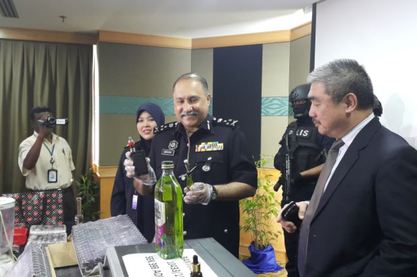 Dilaporkan terdapat 214 botol cecair vape dipercayai dicampurkan dengan ganja dirampas dalam serbuan pada Isnin lalu.