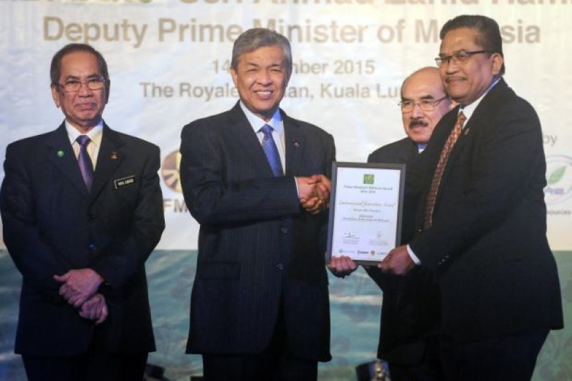 Acidchem International Sdn Bhd dan Nanyang Siang Pau meraih hadiah utama bagi Anugerah Bunga Raya Hibiscus Perdana Menteri 2014/2015.