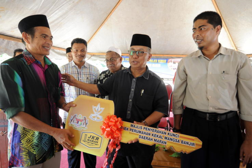 Majlis Penyerahan Rumah Kekal Mangsa Banjir Daerah Maran di Kampung Sembai disempurnakan Anggota Parlimen Maran, Datuk Seri Ismail Abdul Muttalib yang jugaTimbalan Menteri Sumber Manusia.