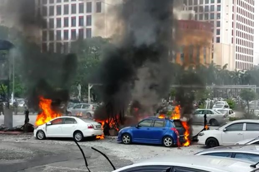 Pada Isnin, lelaki itu telah bertindak melemparkan bom petrol ke arah kereta teman lelaki isterinya menyebabkan kereta terbabit terbakar. Beberapa kereta lain yang berdekatan turut terbakar.