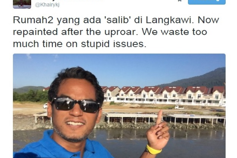 Khairy yang juga Ahli Parlimen Rambau berkata di laman Twitternya : "Rumah-rumah yang ada 'salib' di Langkawi. Kini dicat semula selepas kecoh. Kita terlalu banyak membuang masa dengan isu-isu bodoh."