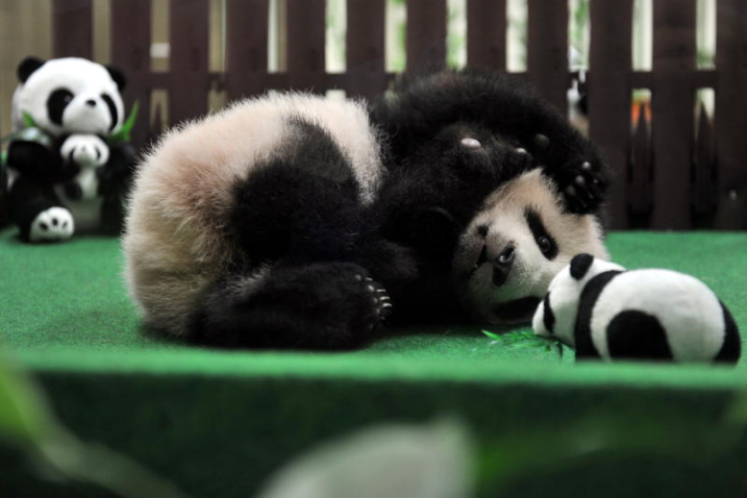 Gelagat anak panda yang kini semakin cergas dipertontonkan kepada media di Zoo Negara pada Khamis. Foto: Bernama