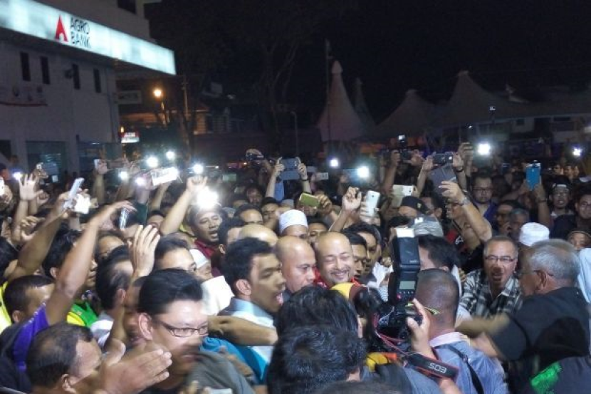 Setakat pukul 9 malam, orang ramai berkumpul di luar bangunan sambil melaungkan dan memaparkan sepanduk menyokong Mukhriz.