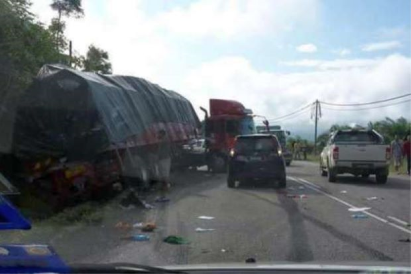 GUA MUSANG: Enam sekeluarga termasuk tiga kanak-kanak maut selepas kereta dinaiki mereka bertembung dengan sebuah lori di Jalan Gua Musang-Kota Baru dekat Gua Sejuk pada Sabtu.