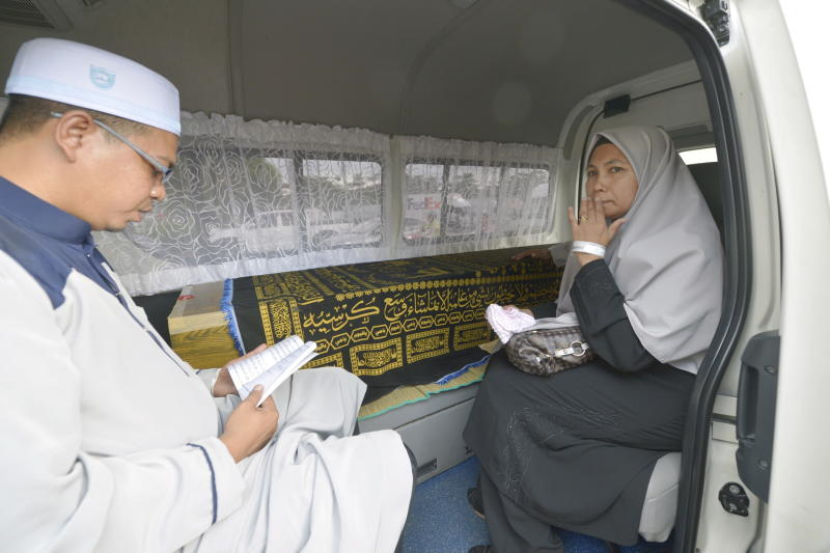 Ketibaan jenazah disambut beberapa pegawai dari Wisma Putra dan Majlis Agama Islam Wilayah Persekutuan (MAIWP).