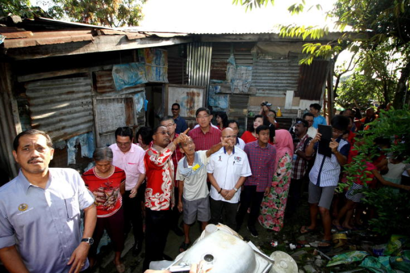 Zambry Abdul Kadir (empat kiri) meninjau persekitaran tempat tinggal pasangan Lin Hon Sing, 76, (lima kiri) dan isteri, Loh Poh Ling, 65, (dua kiri) sempena sambutan Tahun Baru Cina di Jelapang. Foto: Bernama