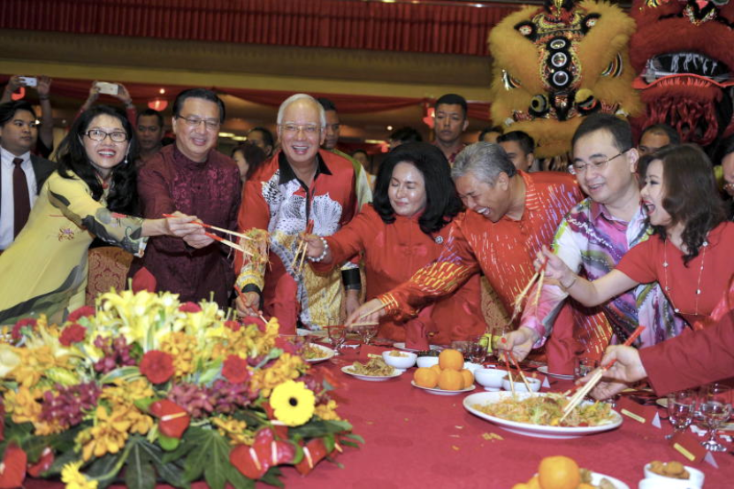 Najib, Rosmah dan Ahmad Zahid yang meluangkan masa lebih sejam di majlis itu, bersama-sama beberapa pemimpin tertinggi komponen Barisan Nasional (BN) termasuk Liow, Presiden Gerakan Datuk Mah Siew Keong dan Presiden MIC Datuk Seri Dr S.Subramaniam turut menggaul 'yee sang,' hidangan utama musim perayaan yang dianggap juadah membawa tuah dalam kalangan masyarakat Cina.