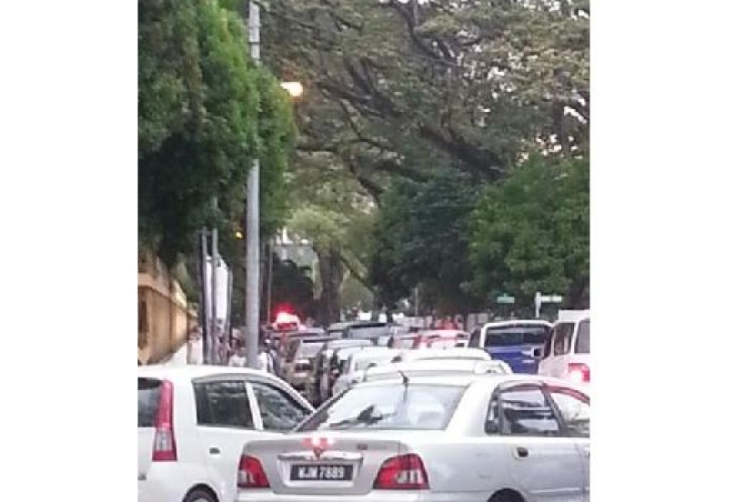 GEORGE TOWN: Sebuah ambulans yang dalam perjalanan dari Jalan Residensi menuju ke Hospital Pulau Pinang terperangkap dalam kesesakan lalu lintas kerana sepanjang laluan tersebut sesak dengan kenderaan yang berkunjung ke Pesta Belon Udara Panas Pulau Pinang 2016 di Padang Polo.