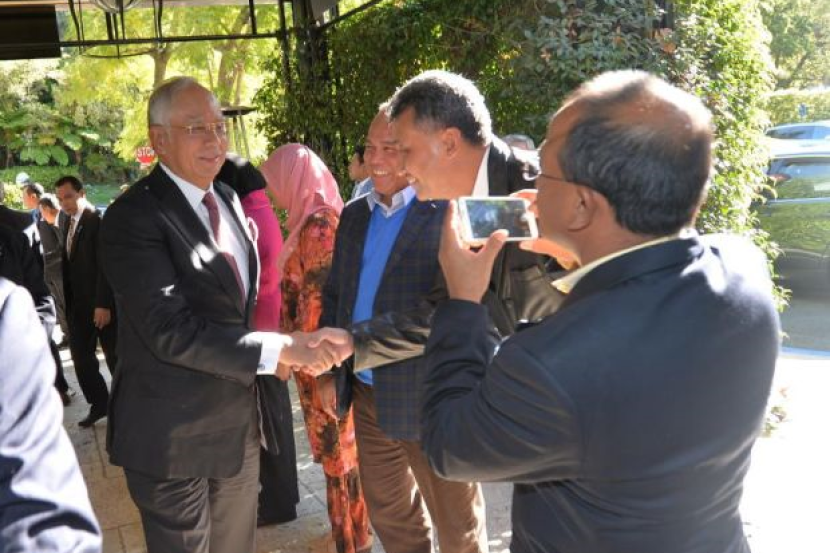 Ketibaan perdana menteri disambut Duta Besar Malaysia di Amerika Syarikat Datuk Dr Awang Adek Hussin.