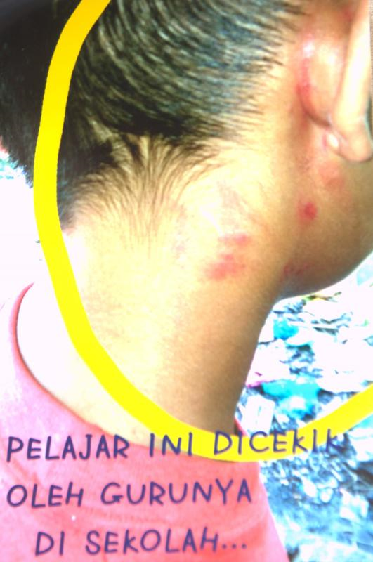 Jamsari Mohammad Hassan, juruelektrik berusia 46 tahun, berkata leher serta bahagian kaki anaknya lebam manakala mukanya bengkak akibat dipukul.