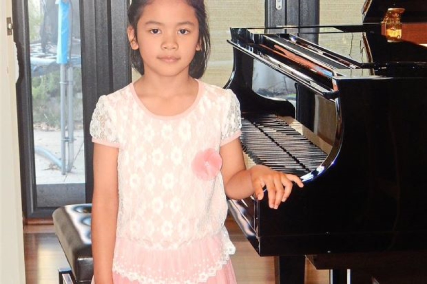 Dia telah bermain piano selama tiga tahun dan baru sahaja bermula pada gred tujuh.