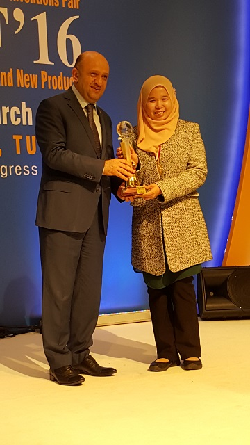 Dr Latifah Munirah Kamarudin Munirah menerima anugerah Grand Prix iaitu anugerah tertinggi ISIF 2016 melalui inovasinya Unisense: Internet of Thing for Multi Sensing, iaitu sistem pemantauan alam sekitar berasaskan awan.