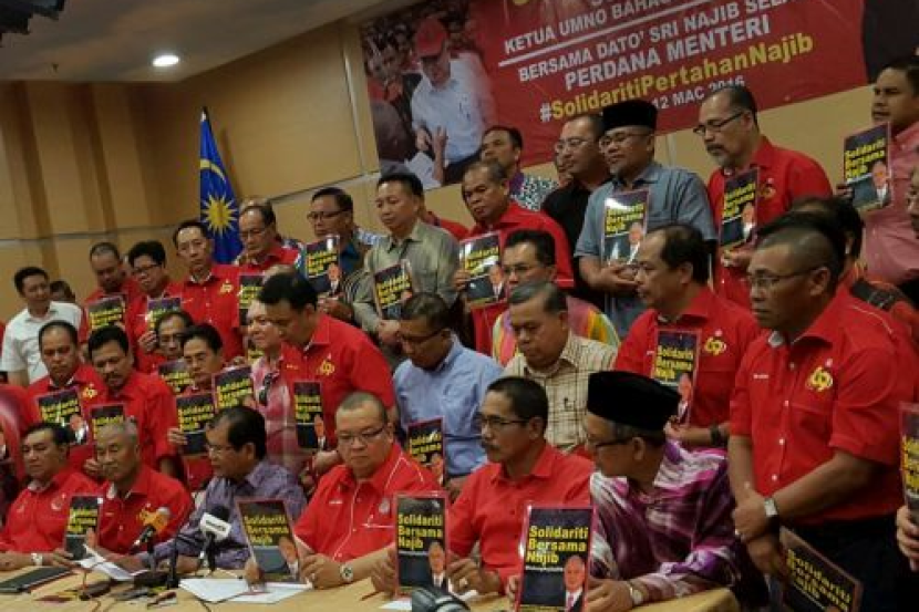 Membacakan deklarasi #solidaritiBersamaNajib mewakili ketua-ketua Umno bahagian seluruh negara, mereka juga menyatakan kekesalan terhadap tindakan bekas Timbalan Perdana Menteri Tan Sri Muhyiddin Yassin dan Adun Ayer Hitam, Jerlun Datuk Seri Mukhriz Mahathir yang menyertai deklarasi tersebut.