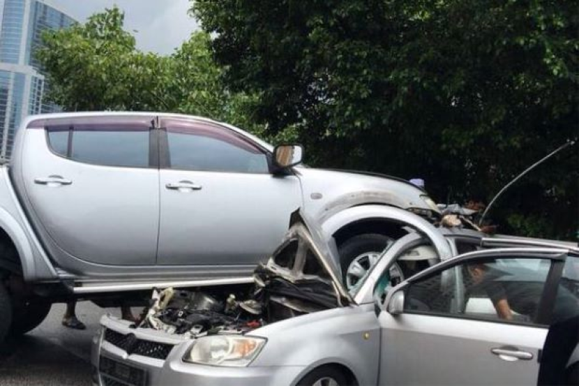 Kemalangan yang melibatkan kereta sebuah Proton Saga dan sebuah Mitsubishi Triton itu berlaku di Jalan Maarof, berhampiran persimpangan Midvalley-Dataran Maybank, berhampiran stesen LRT Bangsar.