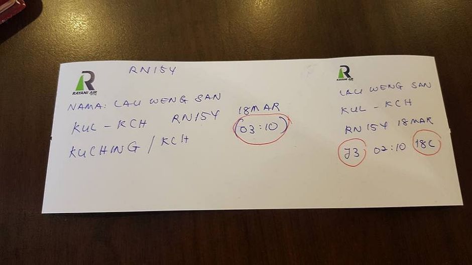 Penggunaan pas penerbangan tulisan tangan (gambar bawah) disebabkan terdapat penumpang yang mendaftar masuk selepas tengah malam iaitu 19 Mac dan sistem tidak dapat mencetak pas berkenaan kerana di dalam sistem, penerbangan itu dijadualkan pada 18 Mac.