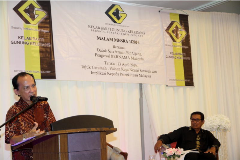 Azman Ujang (kiri) menyampaikan ceramah bertajuk Pilihanraya Negeri Sarawak dan Implikasi Kepada Persekutuan Malaysia pada Majlis Malam Mesra 1/2016 Kelab Bakti Gunung Keledang di Meru Point RAbu malam. Foto: Bernama