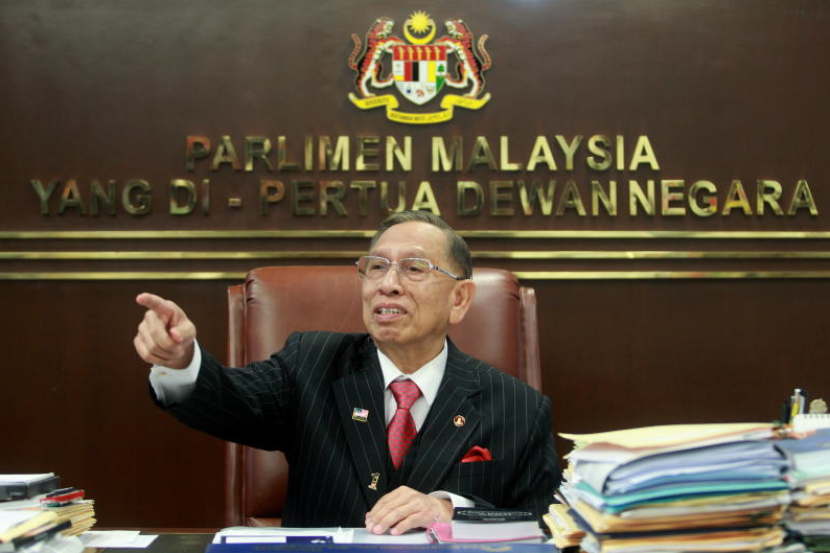 KUALA LUMPUR: Yang Dipertua Dewan Negara, Tan Sri Abu Zahar Ujang menegur tindakan beberapa Anggota Parlimen pembangkang yangmengadakan sidang media di lobi Parlimen, di sini sewaktu persidangan DewanNegara berlangsung.