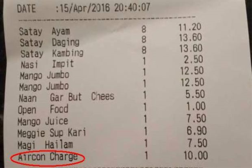 Beliau juga berkata restoran itu juga tidak memberitahunya tentang caj penyaman udara, dan hanya mendapat tahu mengenainya apabila pelayan menunjukkan bil ketika dia sedang makan.