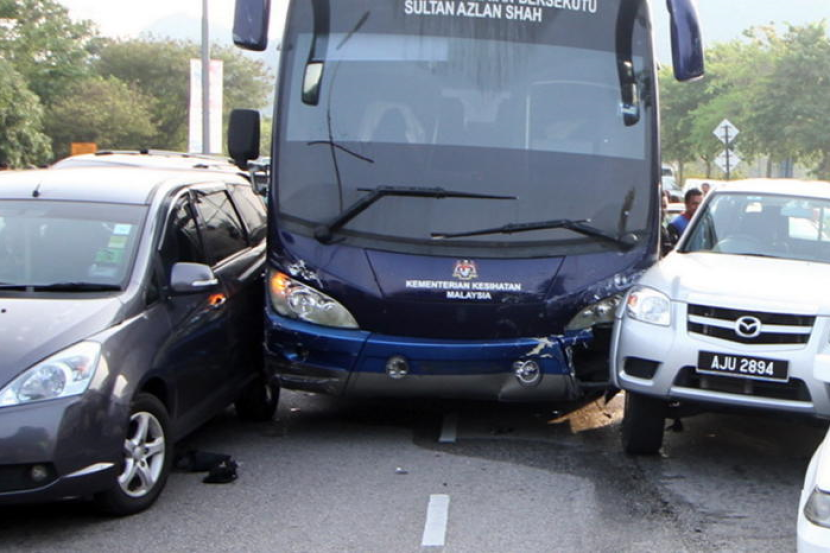IPOH: Sebuah bas merempuh 12 kenderaan yang sedang berhenti di lampu isyarat Jalan Tambun-Sunway, berdekatan pasar besar Giant, di Tambun dekat sini, Khamis. Ketua Polis Daerah Ipoh Asisten Komisioner Sum Chang Keong berkata dalam kejadian pada 7.36 pagi itu, bas yang membawa 35 penumpang sedang dalam perjalanan dari Tanjung Rambutan menghala ke Ipoh. "Apabila sampai di lampu isyarat berkenaan, pemandu bas dipercayai gagal mengawal kenderaan lalu melanggar 12 kenderaan di hadapan yang berhenti kerana lampu isyarat merah. "Tiada sebarang kecederaan dilaporkan," katanya dalam sebuah kenyataan di sini. Menurut Sum sehingga pukul 4 petang tadi pemandu serta 11 lagi pemilik kenderaan terbabit telah membuat laporan polis dan tiada tangkapan dibuat setakat ini. -Bernama