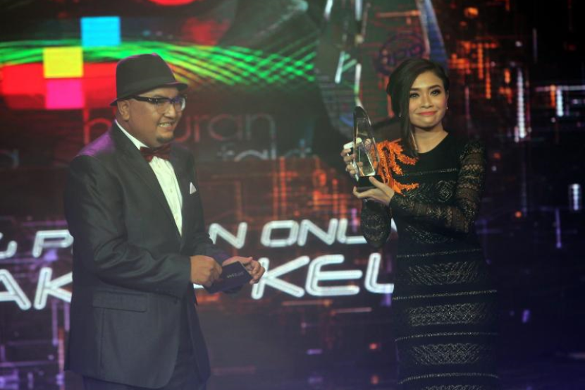 PETALING JAYA: Blog Siakap Keli (SK) tampil memberi penjelasan kenapa memilih penyanyi, Shiha Zikir sebagai wakil untuk ke pentas menerima trofi pada malam Anugerah Pilihan Online 2016 (APO2016), Sabtu lalu.