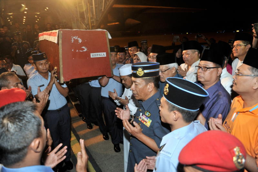 Jenazah Ahli Parlimen Sungai Besar itu tiba dari Kuching pada kira-kira 11.40 malam menggunakan pesawat Lockheed C-130 Hercules.