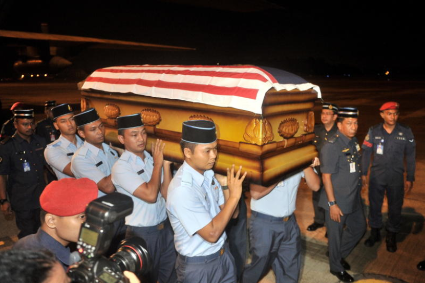 Jasad mendiang tiba pada pukul 12 tengah malam dengan pesawat Charlie C130H melalui penerbangan dari Pangkalan Udara Kuching, Sarawak yang berlepas kira-kira 9.15 malam.
