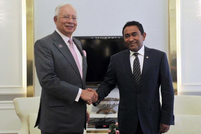 Perdana Menteri Datuk Seri Najib Tun Razak bersalaman dengan Presiden Maldives, Abdulla Yameen Abdul Gayoom (kanan) semasa kedua-dua pemimpin mengadakan pertemuan empat mata di Pusat Dagangan Dunia Putra, Selasa. -fotoBERNAMA
