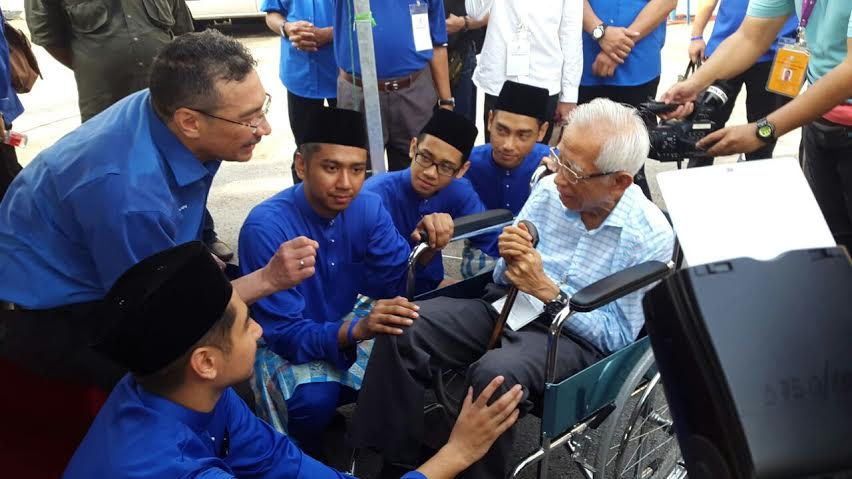 8.29 pagi: Barisan kepimpinan tertinggi PAS termasuk Presiden, Datuk Seri Abdul Hadi Awang menemani calon, Dr Najihatussalehah Ahmad.