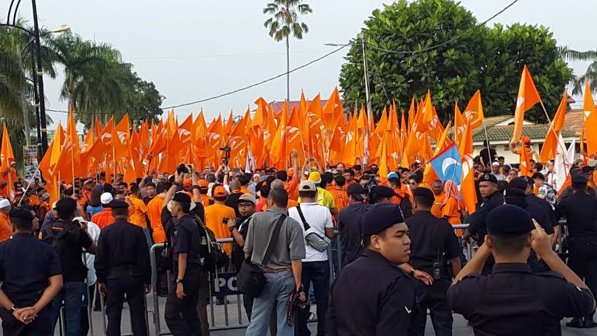 8.39 pagi: Segelintir penyokong PAS menghampiri penyokong Amanah namun dihalang oleh petugas parti kerana bimbang berlaku provokasi.