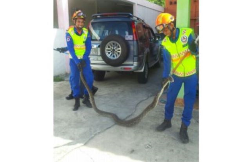 Ular sepanjang dua meter itu memasuki reban ayam di Taman Mawar, dekat sini, pada kira-kira pukul 8 pagi.